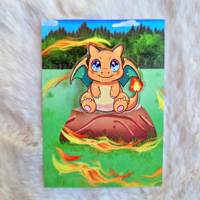 Deze Charizard pin is perfect voor elke Pokémon liefhebber! Het design is door ons zelf getekend en omgetoverd tot een acryl pin. De pin is te bevestigen met een zwart rubber dopje aan de achterkant. Zo zit de pin een stuk steviger op je jas, tas of waar je hem ook aan op wilt hangen.